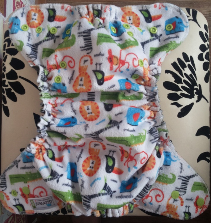 И вот я стала обладателем 2-х подгузников Глориес. Когда открыла посылку была очень разочарована запахом "Дешевого Китая" от подгузников((( это испортило все впечатление, и меня не покидала мысль почему все так хвалят МП, когда они так пахнут( я более внимательно стала изучать именно натуральные подгузники. Ну а заказанные с глориес конечно же нетерпелось попробовать не смотря на выше написанное! после стирки запах более менее пропал. И так вот наш плюшевый подгузник с расцветкой "Сафари":Он очень приятный на ощупь! так и хочется потрогать в нем малышку за попку