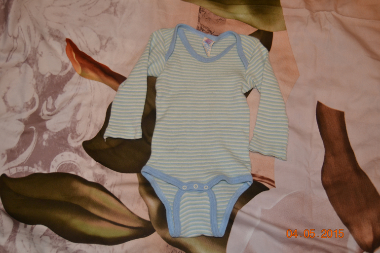 Боди Энгель шелкошерстяной, размер 74/80. Сначала также использовали на сон, потом стали использовать как поддеву с длинными штанишками. Еще застегивается нам, но уже немного внатяг, я так не люблю, носим сейчас приданое от старшего брата )) в размере 98/104.