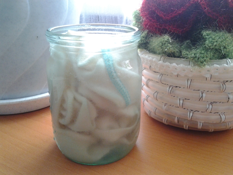 получилось не специально;) но идея понравилась, хорошо подходит для тех случаев,когда нужно проланолинить тонкие штанишки типа пираты лайт,энгель или наппи тонюськи... они полностью погружаются в воду и не всплывают и класть нужно всего 1 ч.л. ухода...банка в данном случае 0,5... я наверное не первооткрыватель,но вдруг кому то понадобится;)