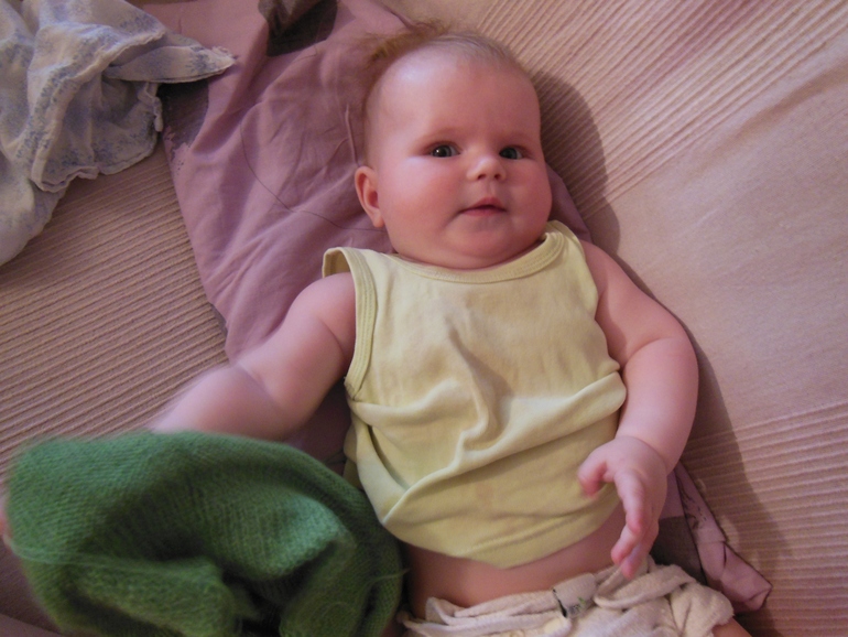 В другой раз свяжу шире между ножек и выше резинку на талии, потуже чуть. Резинку можно и сейчас вверх довязать. Эту же резинку наверное буду делать 2*2. Обработала ланолином так, что пятна жирные насквозь))) Ну и фото, на первом дочь помогает мне))