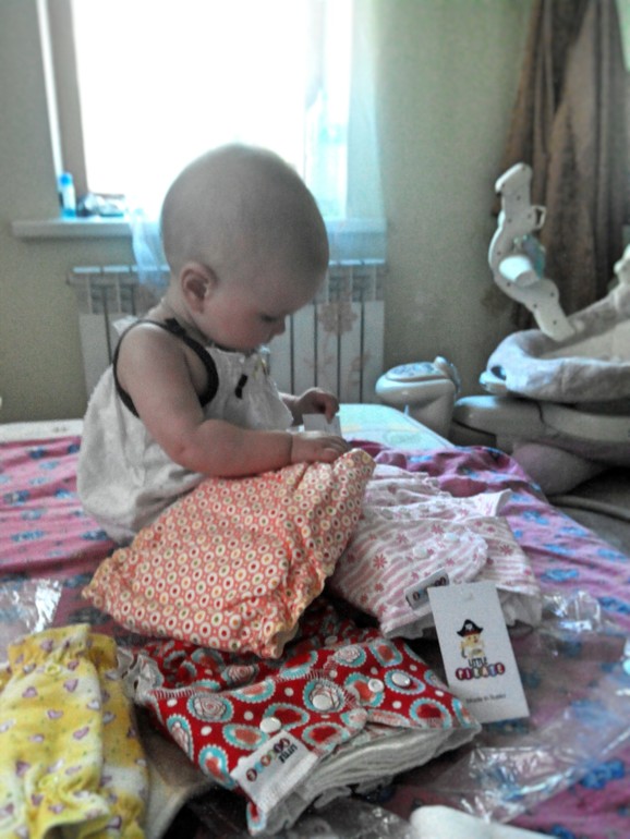 Теперь про сами подгузники.Сразу скажу,что это мои первые многоразовые подгузники,до них я даже в живую МП ни разу не видела.Опыта в сравнении с другими у меня нет.Открыв посылку я долго их рассматривала,щупала,даже понюхала)))В общем вела себя как та мартышка из басни.И они мне очень понравились,понравилась сама их мягкость,сшиты качественно,нигде ничего не торчит,все аккуратно.Яркие,как я и хотела.Не привычен сам размер подгузника,к многоразовым нужно именно привыкнуть,все ж они больше намного одноразовых.В итоге я довольна.