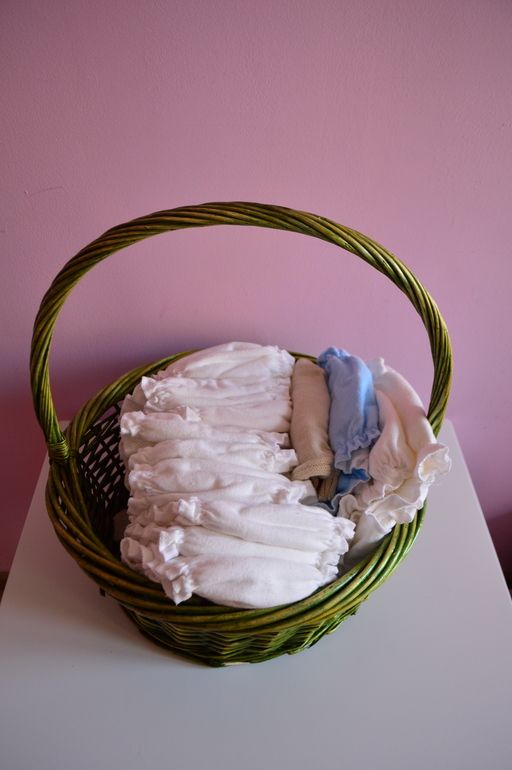 5 штук белых. Какие-то с вкладышами, какие-то без. Размер этих подгузников небольшой - подойдет для детей от 0-10 мес. примерно, кому-то может и до года хватит, хороши для новорожденных. Но у них туговато застегиваются кнопки. Тому кто возьмет расскажу, как исправить.