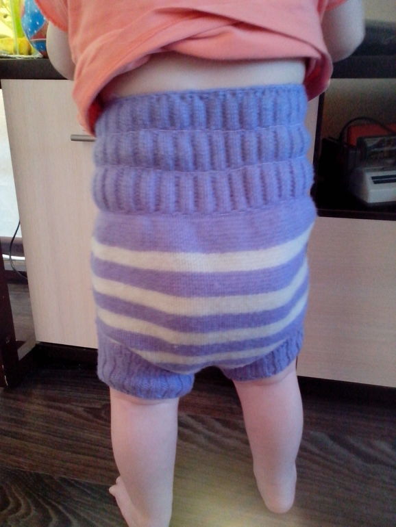 Подгузник своими рукамиДумаю не у меня одной возникла проблема с растянувшейся резинкой на шерстяных штанишках. Смотрите, как я ее решила. В действии не пробовала, но внешне видно, что резинка подтянулась. Растягивается хорошо. Понадобилась нитка-резинка, крючок и час времени.