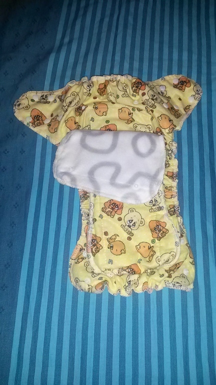 Верно, сверху вкладыш, снизу флис, тканевый подгузник без подобного вкладыша, ну допустим с марлей, или свернутой пеленкой промокает гораздо быстрее, в любом случае такой подгузник на ночь одевают с обложкой