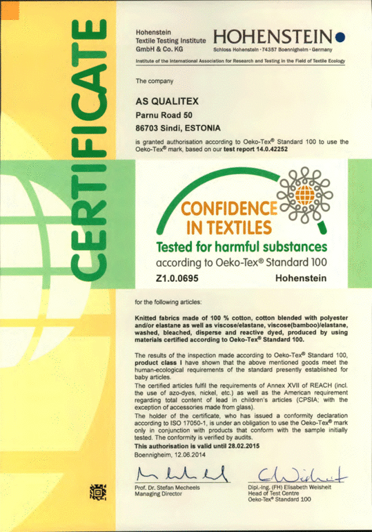 Наталья, я запостил эту фотографию как илюстрацию того, что это уважаемая компания с высокими стандартами производства. Oeko-tex1000 — это гарантия экологической безопасности изделий. GOTS означает, что они делают полотна органик.http://www.qualitex.ee/ru/content/sertifikaciya