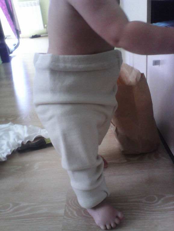 Рейтузы нам достались в самом большом размере, поэтому великоваты конечно. Шерсть -мягкая, вязка - плотная. Цвет потемнее штанишек лайт. Пока отложила их до холодов. И немного фото на модели (манжетики закатали 2 раза и резинку в талию вставить надо)