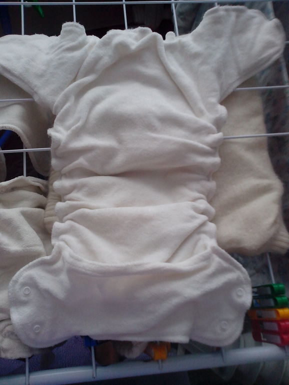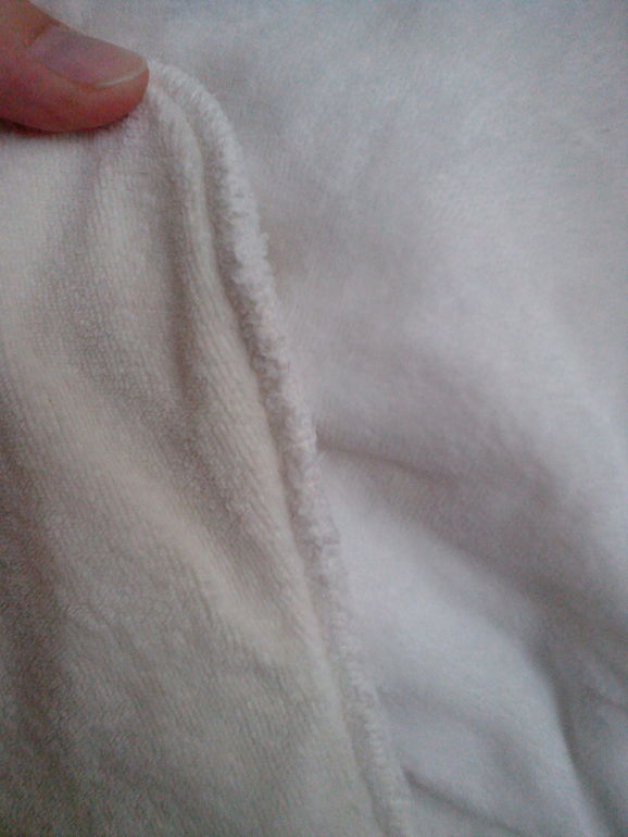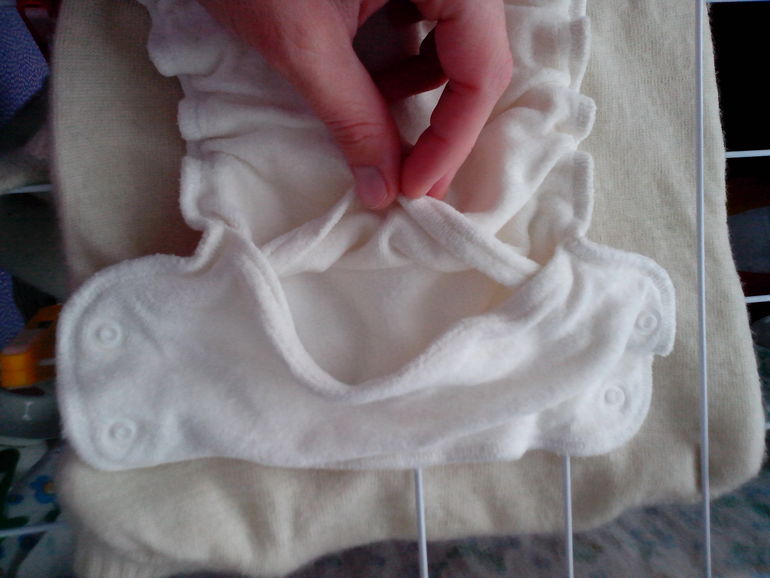Ну и еще я заметила, что при раскрое выкройка попала не совсем по направлению долевой ткани (не знаю как правильно выразиться, говоря о трикотаже) и от этого подгузник после стирки немного повело, т.к.трикотажу свойственно вытягиваться по направлению петель, а тут они немного смещены диагонально.В общем и целом, подгузникочень хороший и за его мягкость я ему все прощаю)