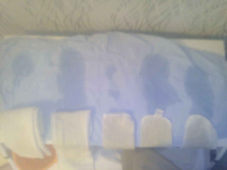 В связи с нашими большими ночными пописами задумалась, а какие собственно вкладыши впитывают больше. Раньшевкладывала в ночь дублером коноплю. Этак Вашему вниманию слева направо: марля дисана, пополини от пополини-софт, бендель дневной, шторх конопля, шторх овальный.