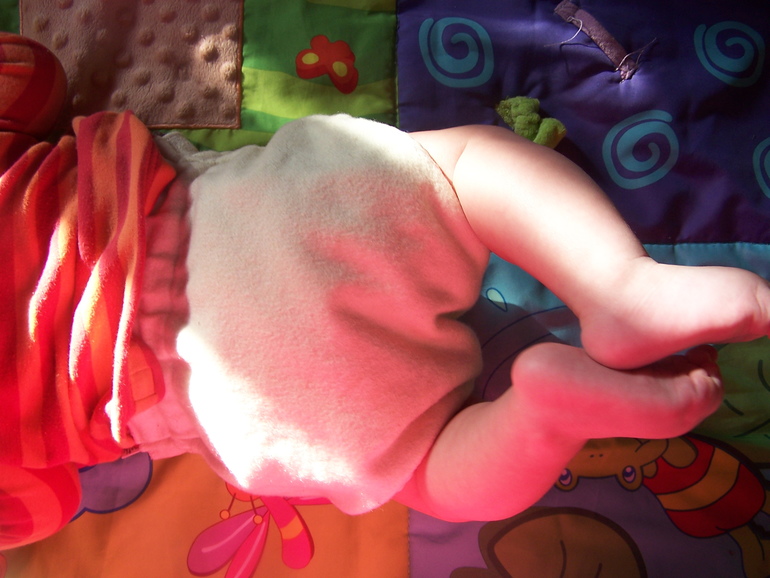 Ну и последняя наша обложечка (все ж бежали, и я бежала, купила...) Бендель. Сидит она тоже "коряво". Но мне нравится ее цвет. Всёёё! Нравится цвет, всё остальное не имеет значения. Хотя в ней есть и другие достоинства, кроме цвета. А на недостатки (а ведь тоже шерсть липнет к липучке, но это почему-то не раздражает так, как в Дисане), когда речь идет о многоразовых подгузниках, я давно уже закрываю глаза. На фотографии обложка 5-8 кг на тос же ребенке, что и Имсе в то же время (при сравнении они оказались практически одинаковые по размеру, но крой разный. И Бендель реально можно надевать с 5 кг, я своему малышу надевала)