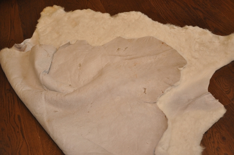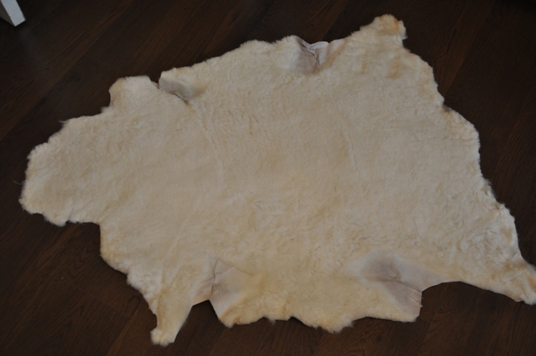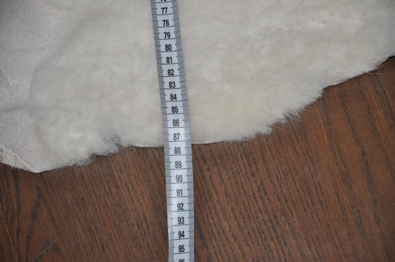 Шкурка натурального цвета, шерсть стрижена, размер по максимально вытянутым сторонам 115х87 см, отлично покрывает большую часть матрасика, даже в нашей нестандартно большой кроватке.