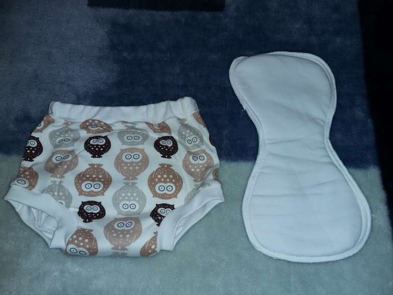 С трусиками приехал дополнительный вкладыш, толстенький и очень мягкий. Преогромное спасибо 😊!! Внутри трусиков - нежный бархат, мммм, такой мягонький. Талия регулируется резиночкой на пуговке. Мы попросили размер л, на нашу годовалую 13-килограммовую попу село отлично, небольшой запасик есть. В общем, мы очень довольны приобретением. Носим сейчас днём, но смело можно одевать на ночь, т.к. мы по ночам высаживаемся на горшок, но не всегда успешно, случаются и мокрые подгузники. А с трусишками этими будет удобно и легко присесть на горшок. И не страшен серый волк 😊. Вкладыш опробовали с дневными наппи. Впитывает очень много, даже наш фаворит - вайзовская конопля- в этом вопросе проигрывает.