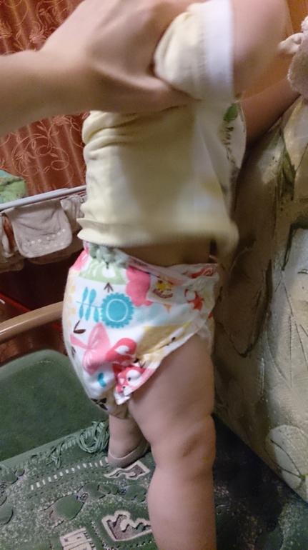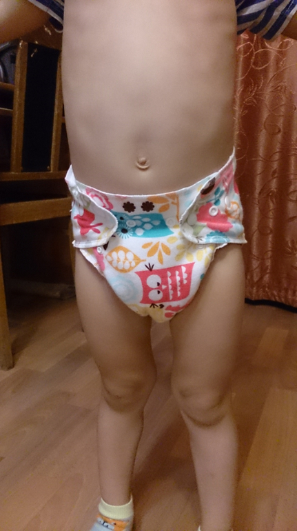Итог теста таков: Мне подгузник очень понравился, гораздо толще других фланелевых подгузников. Очень понравилась его ширина (не люблю узкие, а то у нас вечно покаки вытекают))), очень хорошая посадка - застёгиваем по высоте на первый ряд кнопок и подгузник прилегает по ножкам очень хорошо. Если бы не повысили цену на них, то купила бы ещё, хотя у нас уже и так перебор и есть запас на третьего))