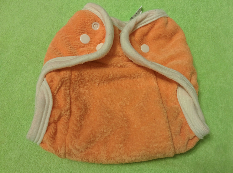Пополини мы делили сет и мне достались подгузы оранжевого, желтого, синего и зеленого цветов. Постирала пока только оранжевый - будем мерить)