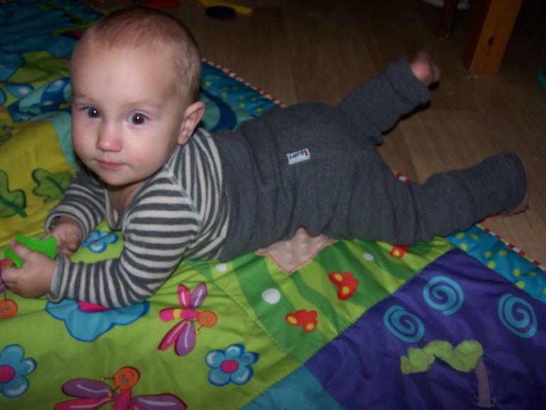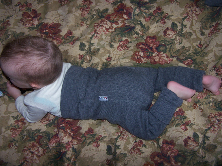 И решила их достать, и пусть Мишутка ползает в них по дому (все-таки холодно у нас, у меня ноги мерзнут постоянно). Мишутка совсем не хотел фотографироваться, убегал