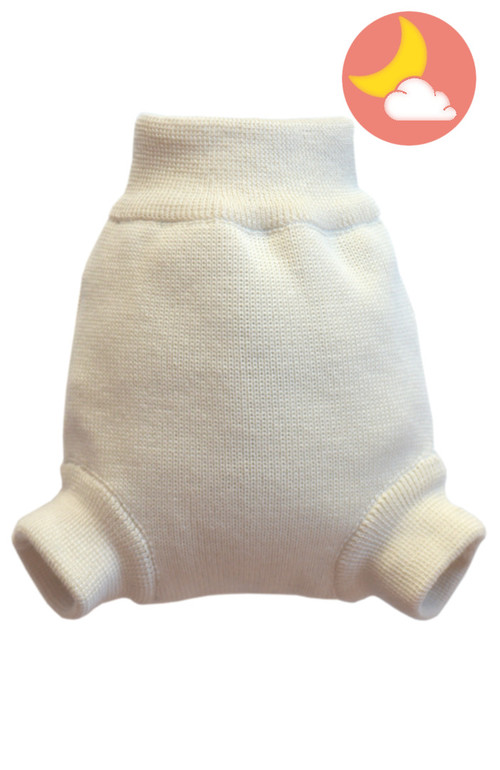 Чтобы сохранить одежду ребенка сухой - шерстяные штанишки. Для ночи двухслойные, на день хватит и однослойных. Штанишки одеваются поверх тканевого подгузника.