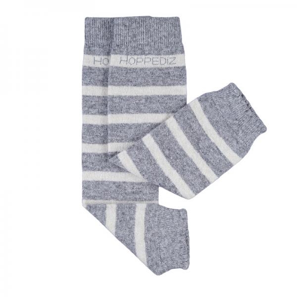 1.Hoppediz Baby-Stulpen Wolle grau-creme gestreift