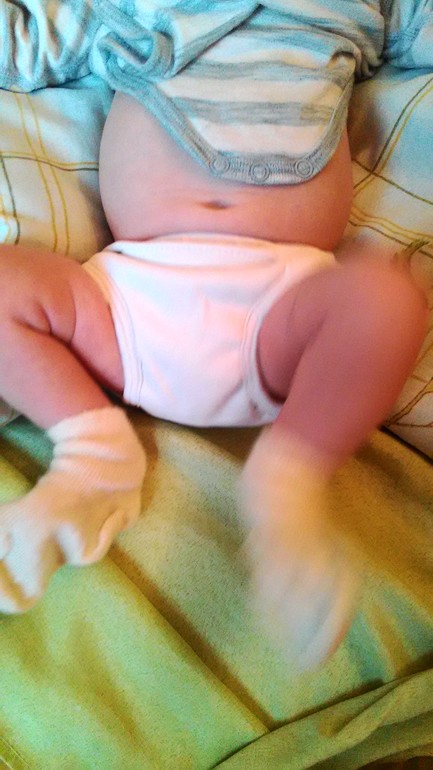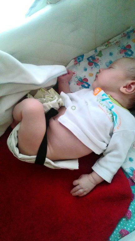 Для высаживания мне честно не нравится не один подгуз для новорожденного. Я люблю или просто подложить вкладыш под попу, или накрутить венгерку с подогнутым за край концом. Ещё очень мне понравилось завязать на животе обычную резинку толщиной 1-1,5см и подсовывать под неё прямоугольные вкладыши, опять же из муслина. Еще у меня в ходу активно вкладыши из старых простыней/пододеяльников или марли, которые мама принесла с дачи, до этого первый месяц использовали их с сыном, когда про многоразовые Подгузы я даже не догадывались. Обвчно использую их тогда, когла догадываюсь, что нас ожидают "большие" делишки. Вот как эта конструкция выглядит. Тут ещё красный спальник Енгель подложен под попу.