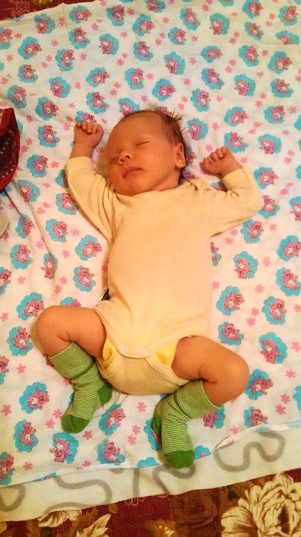 В первый месяц очень пригодились носочки из мериноса. Но сами носочки (Хирш натур) мне не очень понравились тем, что практически не тянутся, зато размер 15-17 за счёт этого хорошо сидел на новорожденном, но как только ребёнок наростит жирок боюсь будут давить сверху на ножки.