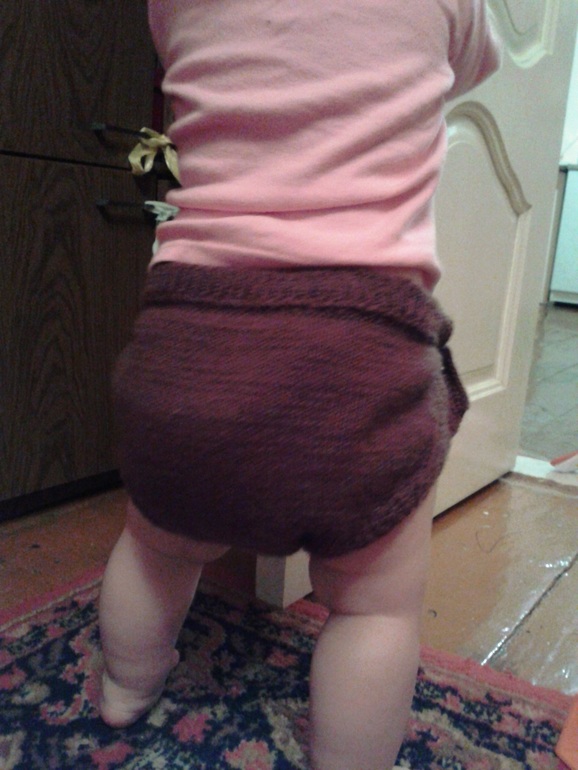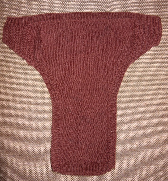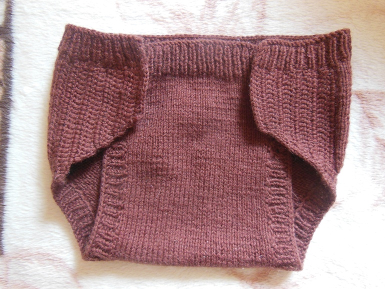 Подгузник своими рукамиПряжа троицкая люкс 200м\50г, цвет махагон 2233, в 2 сложения, спицы №2, ушло почти 2 мотка.
