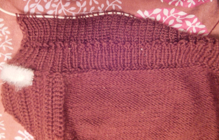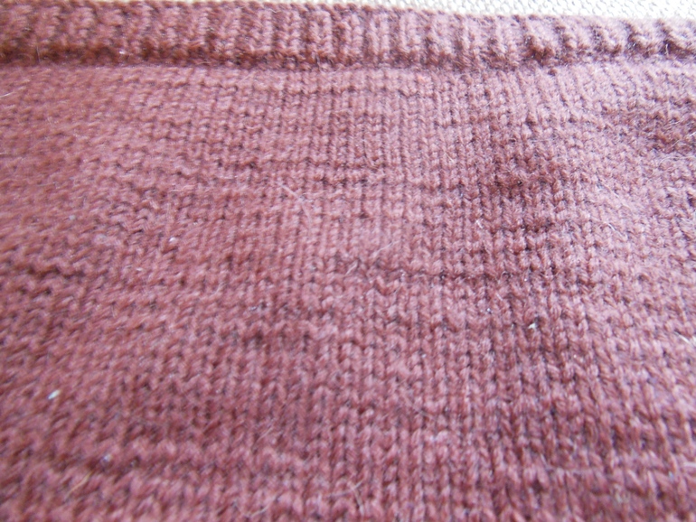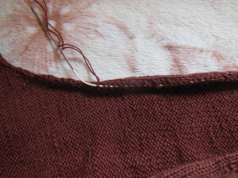 6. Фото с изнанки. Набрала спицами сверху петли, провязала резинкой 1*1 рядов 8. Край больше не подворачивается.