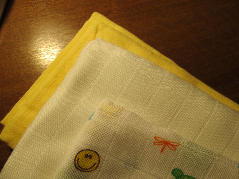 Муслин:Wisemam активно б/у испорченный машинкой и почти новый(около 10 стирок), Mothercare б/у, новый Пиратский.
