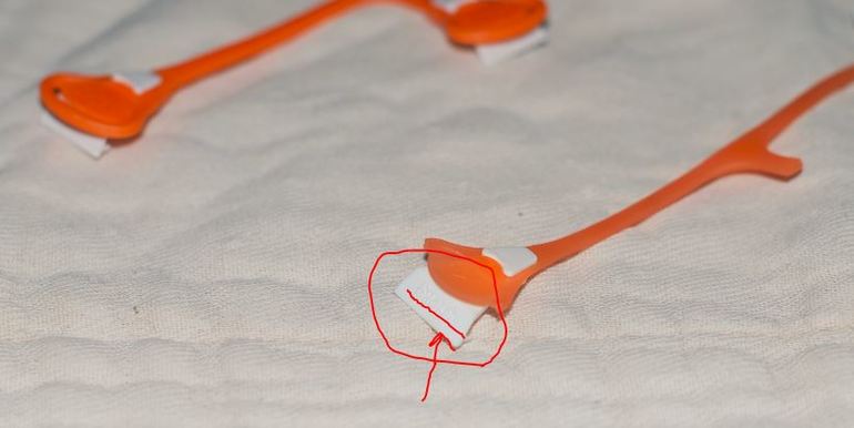 1) Белые гребешки - угол коготочков в поддельных снапиках меньше (т.е. оригинальные как бы более раскрыты) и мою прекрасную рыхлую пакистанскую ткань они хватают НАМНОГО хуже. Это их основное предназначение, и они провалились уже с самого начала.