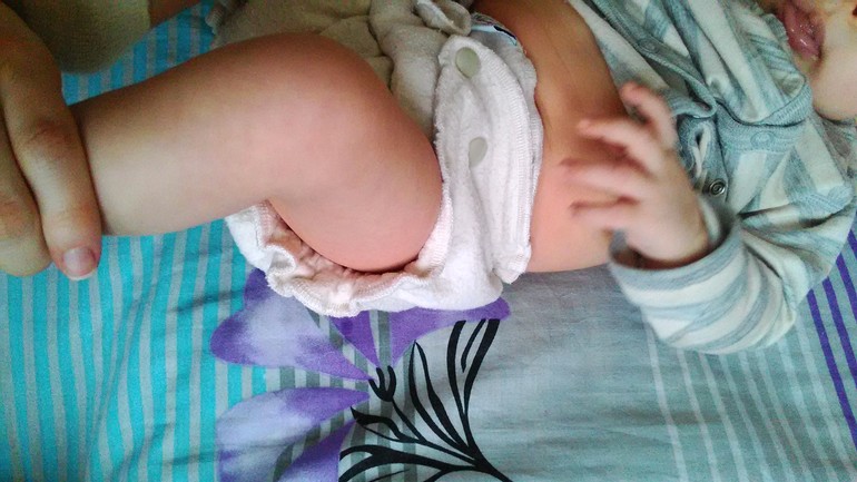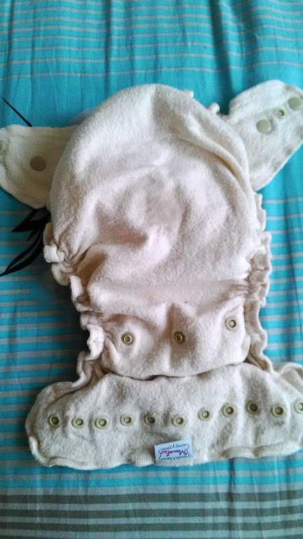 Теперь показываю внешнюю сторону. Видно что насквозь вышла всего лишь маленькое пятнышко, поэтому впитывает отлично , даже без дополнительного вкладыша. Те попис младенца прекрасно выдержит без усиления, но думаю только один))