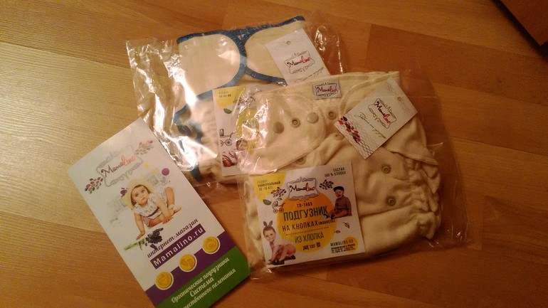 Посылочка была очень долгожданная. Я дозаказала ещё подгузничек с васильковой окантовкой. Все подгузники с этикетками, приятный буклетик внутри. По буклетику -печать слегка хромает, нечёткая, но фото очень милые))