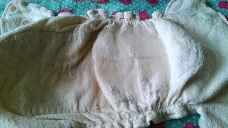 Я это для эксперимента специально налила,) я редко использую подгуз без вкладыша, только если знаю, что буду менять сразу, но и чтобы совсем с голой попой не лежать, если прохладно..