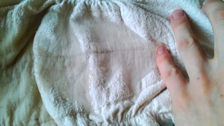 Вот такое пятно будет на фланеле, если просто положить подгузник на пеленку..