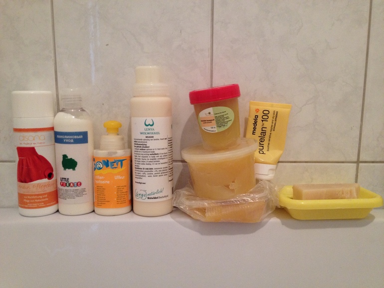 5. Безводный. Разницу в безводном ланолине разных производителей не заметила (китайский, бельгийский, пулеран и ещё пару неизвестного происхождения). Я развожу его с каплей шампуня в очень горящей воде. Немного спирта тоже добавляю, показалось с ним лучше растворяется, может самовнушение. Минута дела, короче говоря. Наташа подсказала, что безводный ланолин можно купить в рецептурном отделе аптеки, в минуте ходьбы от моего дома, так что если вдруг закончатся мои запаса ланолина, буду брать там.