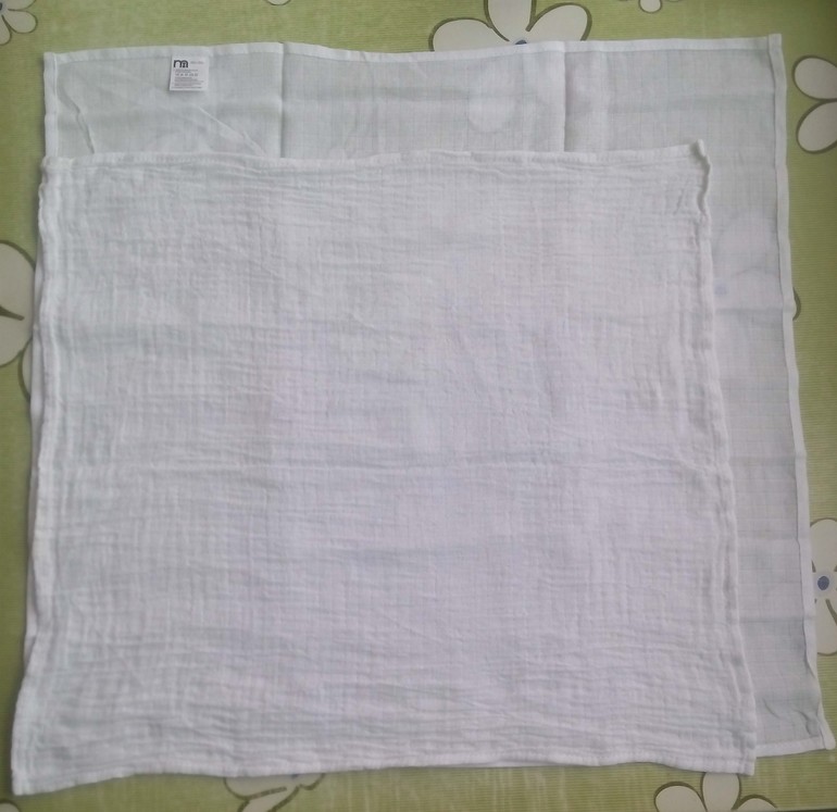 Вот у меня этот муслин после стирки прилично сел (длинная сторона около 52 см, короткая - около 47). Квадрат и так-то был небольшой, но теперь вообще миниатюрный. И это в дополнение к ужасным швам, из-за которых неудобно пелёнку складывать. Что вы с такими кусочками делаете? Мы сейчас во время воздушных ванн подстилаем две пелёнки в развёрнутом виде под попу. Но, может быть, они на что-то ещё сгодятся?