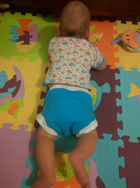 В двух словах: малыш переехал на пол и попрощался с подгузами на время бодрствования.