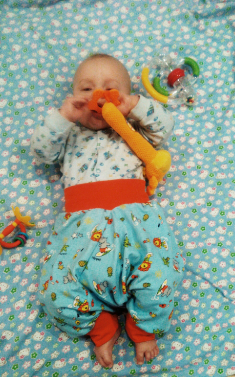 С переходом на МП возник вопрос по поводу одежды,решили что просторные штанишки самое то для пчелопопы.Хотели пошить пару штучек на пробу,но не смогли остановится-расцветок море,а для ребенка просто супер-свобода движений! Папина любимая расцветка -камуфляж..