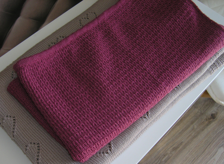 Первые пару стирок оба пледа окрашивали воду. Стирала руками в прохладной воде, обработала ланолином обоих, сушила в расправленном виде. Усадки не заметила. После стирок принципиальной разницы по мягкости лично я не вижу. Но и сравнить их сложно. Сама нить у Ml толще, чем у LP, и он плотнее. LP более легкий и ажурный.