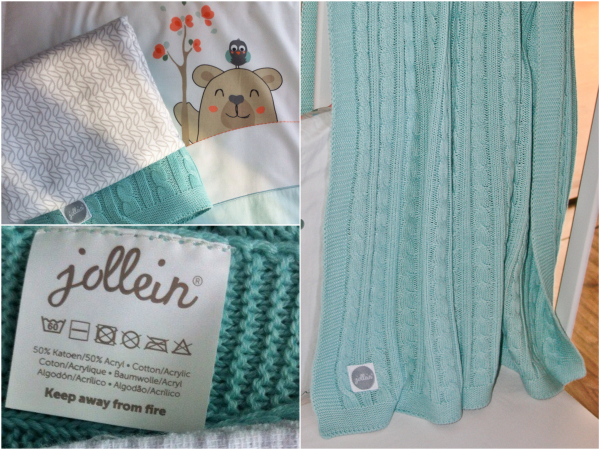 Нам достался плед нефритового цвета, он полностью соответствует всем фотографиям на сайте. Имеет нежный деликатный цвет, который подойдет и мальчикам и девочкам, узор косичка делает его интересным и нарядным. Если вы ищите красивый хлопковый плед на выписку, в коляску или кроватку, присмотритесь к Jollein. Наш пережил достаточно стирок, в том числе и на 60 градусах и практически полностью сохранил свой внешний вид, ну может чуть снизилась насыщенность цвета.