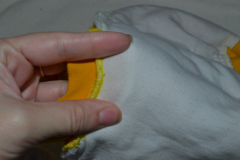 у меня тоже на желтых вкладыш с одной стороны не прошит. До стирки не смотрела, обнаружила уже после первой же.