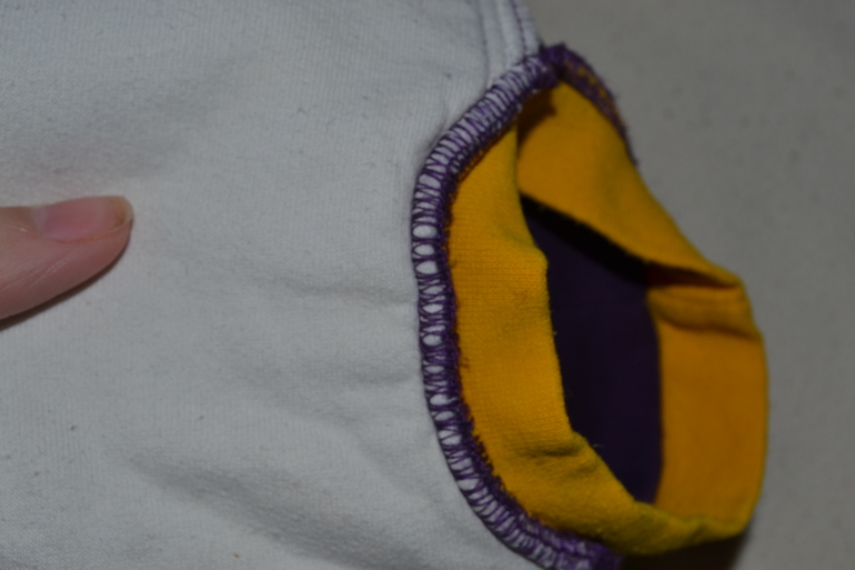 У желтых трусиков вкладыш не пришит по краям, после стирки сбивается. На фото видно какой просвет между краем и вкладышем.
