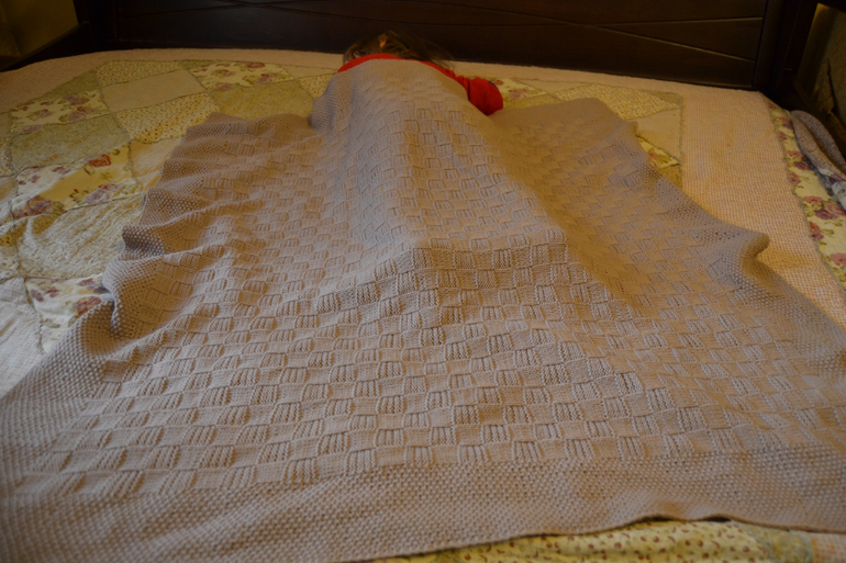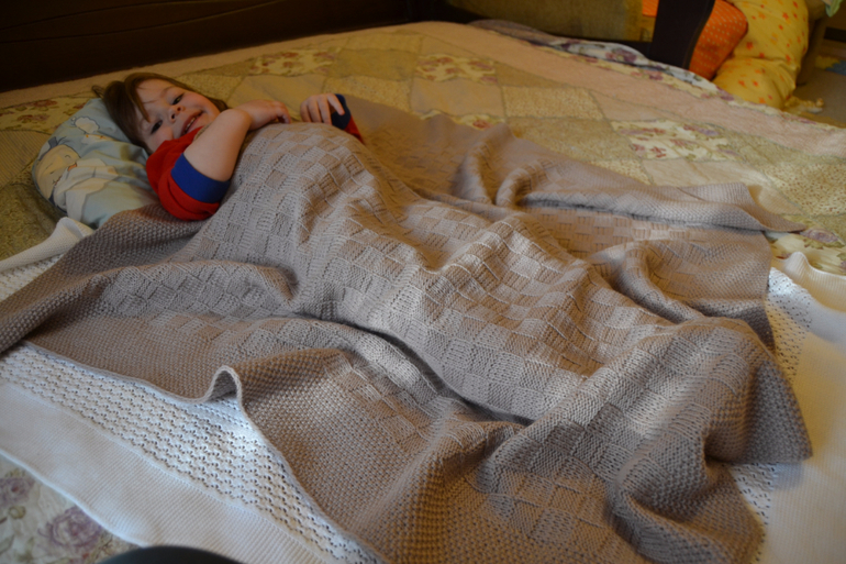 а теперь по-порядку. Нужен был пледик, но деть уже крупненький, поэтому большинство производителей не подошли(( слечайно узнала, что у Евгении (мамалино) можно заказать большой размер. Вязали вручную. и вот он приехал!! радости моей не было предела, особенно когда увидела-как доволен деть))) и укрывается и заворачивается и кукол укрывает