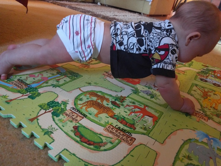 Пол грязный в деревне, поэтому на коврике он был или в бодике застегнутом и без трусов, или в хипстерах. Периодически он "уползал" с коврика и я боялась как бы не занес бяку в писю. Вообще хипстеры в деревне стали моим спасение! Их легко стирать и они быстро сохнут.