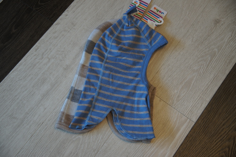 Бежево-серые вещи плотные. Чепчик и голубой шлем тонкие.