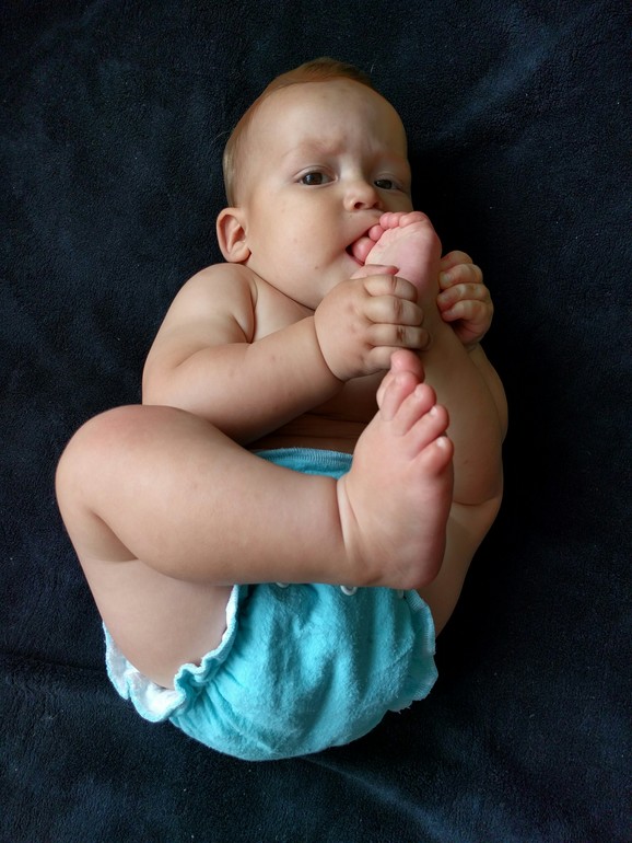 А он очень долго не мог согнуться)) было видно, что ноги нашел, так как все время мял их. Впервые засунул в рот равно в 6 месяцев в автокресле голый (ох уж этот питерский ливень). После этого уже и лежа стало получаться, но тоже голышом - подгуз и одежда мешали. Сейчас и в одежде получается))