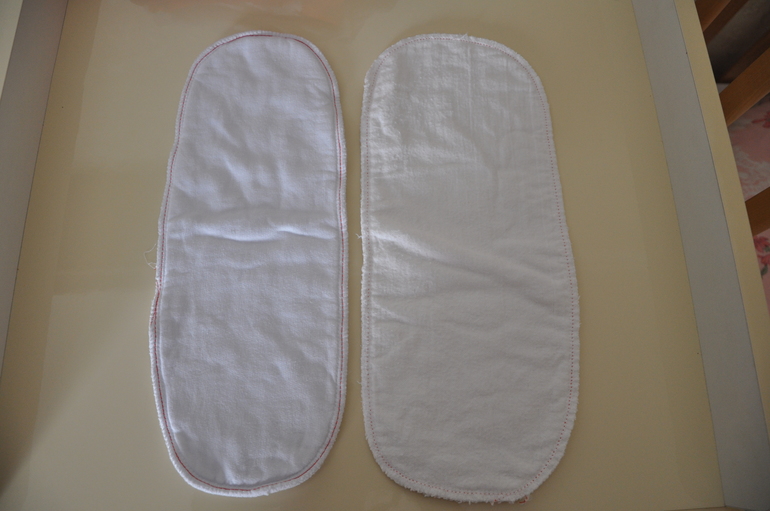 Зверята трехслойные, розочки двухслойные. Вкладыш из футера (4 слоя ткани). Трехслойные прям в обтяг сели, розочки свободнее. Пробовала вставлять ситцевую пеленку и махровый вкладыш, мне не понравилось! Для ходячих деток неудобно, так что я все-таки остановилась на Яниных вкладышах. Они и в трусиках не торчат, и в жгут не сбиваются, как у нас вышло с вкладышем из махры.