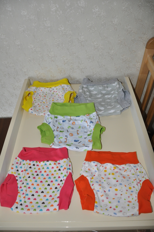Некоторые трусики по старой выкройке, некоторые по новой - расстояние между ножек уменьшено, для ходунков так удобнее.