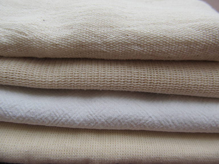 Слева направо: прокладка с пул, ежедневные 100% не отбеленный хлопок, махра - 100% хлопок, основание полотна - 80% хлопок, 20% полиэстер.