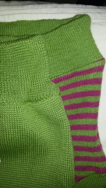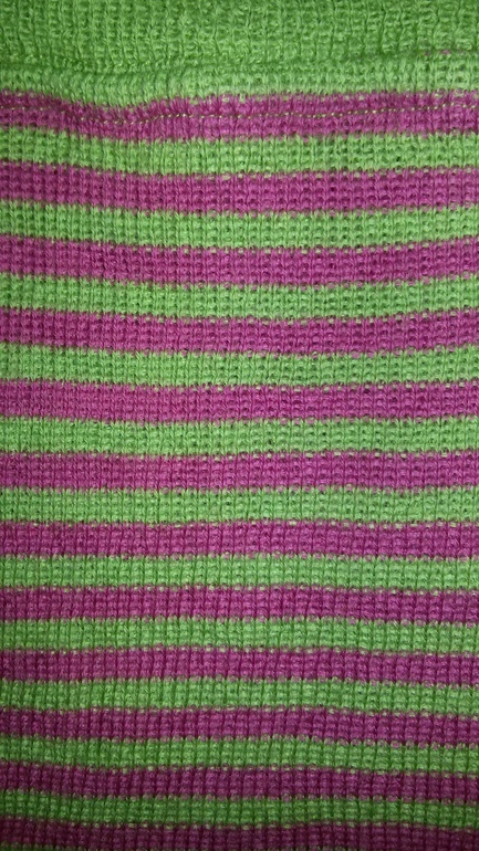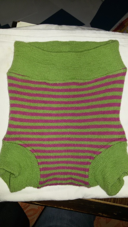 Приехали и я тут же кинулась стирать полосатые штанишки (они были без упаковки полиэтиленовой, завернутые в бумагу и бирочка висела). Одноцветные я не трогала. Т.к. были завернуты в жгутик и упакованы хорошенечко в пакет. Штанцы показались мне тонюсенькими, ну думаю ладно, наверное потому что однослойные.... Хожу я значит щупаю высохли или нет и решаю посмотреть штаны зеленые. И та-дам достаю! Первое что бросилось в глаза - они плотнее и тяжелее и размер как-будто больше. Я притащила влажные полосатые штаны и начала сравнивать. И поняла что полосатики связаны в одну нить, а зеленые в 2! Кстати полосатики все рыхлые какие то из-за этого и плоховато держат форму, напоминают желе. Стирала их еле касаясь холодной водой пиратским же мылом ланолиновым.