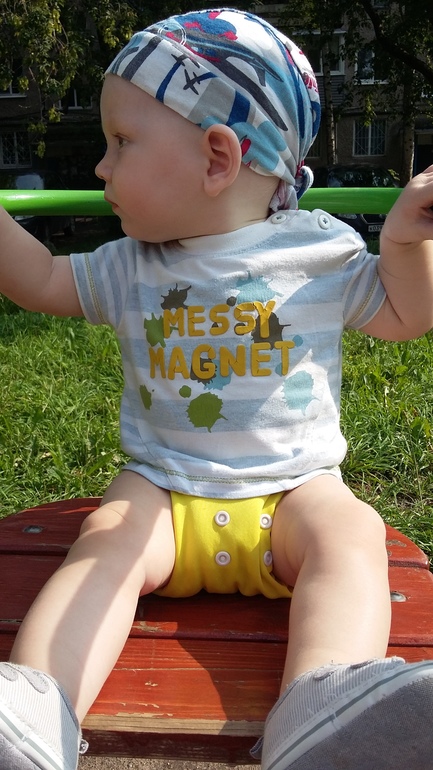 Ночью сынок спит в наппи ночном с родным вкладышем+тихая ночь или в бендель с родным вкладышем+тихая ночь, есть еще на подстраховку махровый вайз. И , конечно, сверху штанишки.