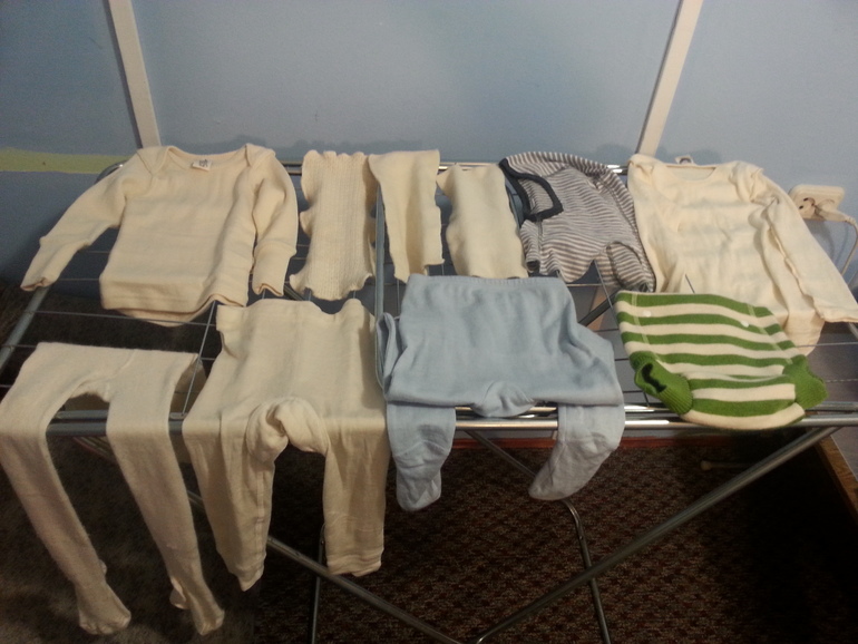 Пижама энгель шш, размер 80 на наши 69-70 с двумя подворотами до лета :) тоже мягкие. Но йоха боди теплее получается, шелк как будто холодит немного. Наверное, оставлю этот на активные хождения днем, а на ночь все же шерсть.
