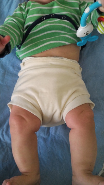 У меня ребенок 8,8 кг сейчас, без недели 7 месяцев. Носим тренировочные Мамалино в размере 86-92 как пеленальные сверху на МП, место с кнопками заворачиваю наружу, нигде ничего не спадает, прекрасно сидят и держат тоже хорошо, резиночки на талии при желании можно отрегулировать, нам не понадобилось, а к лету мы будем носить их как тренировочные с родными вкладышами, такой способ долгоношения я подсмотрела у Наппи.)