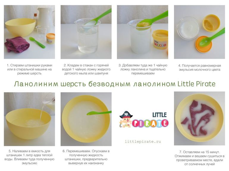 Тоже пару раз переланолинивала:) ничего страшного, как хорошо просохли, нормально надевала на сына. Через пару дней получше становились:) я ланолиню пиратским безводным ланолином, но на одни короткие штанишки сейчас беру не по целой чайной ложке ланолина и шампуня, а по половине:)